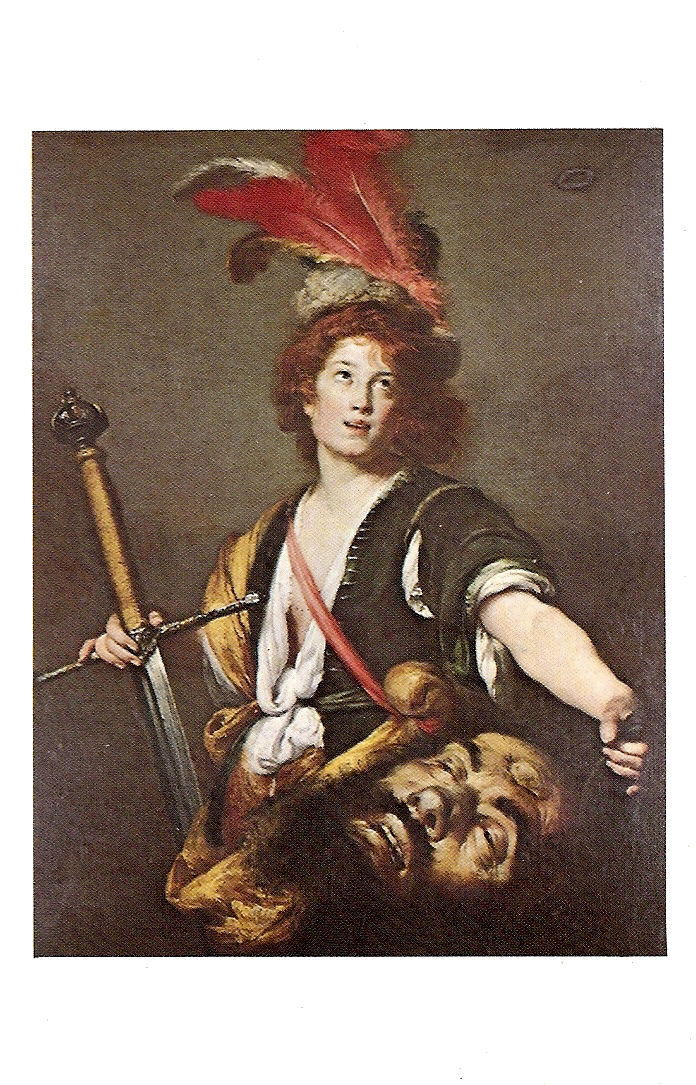1st card-Legend of Sts. Eligius & Godeberta by Petrus Christus 1444-1473, 2nd card-Young Girl Bathing by Renoir 1841-1919, 3rd card-Portrait of a Young Girl by Rembrandt 1606-1669, 4th card-St Anthony in the Wilderness Italian before 1451, 5th card-David With Head of Goliath by Bernardo Genoese 1581-1644.